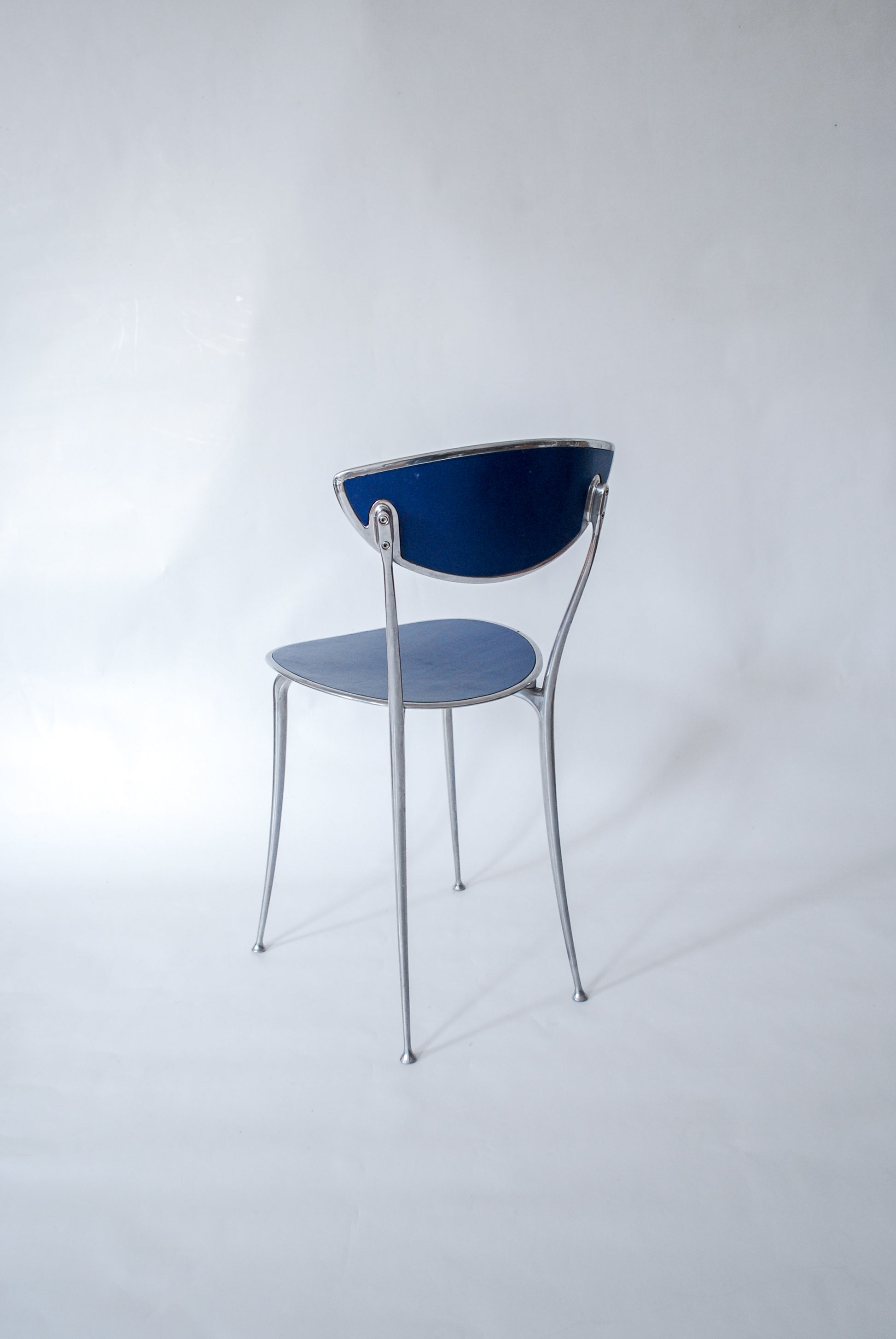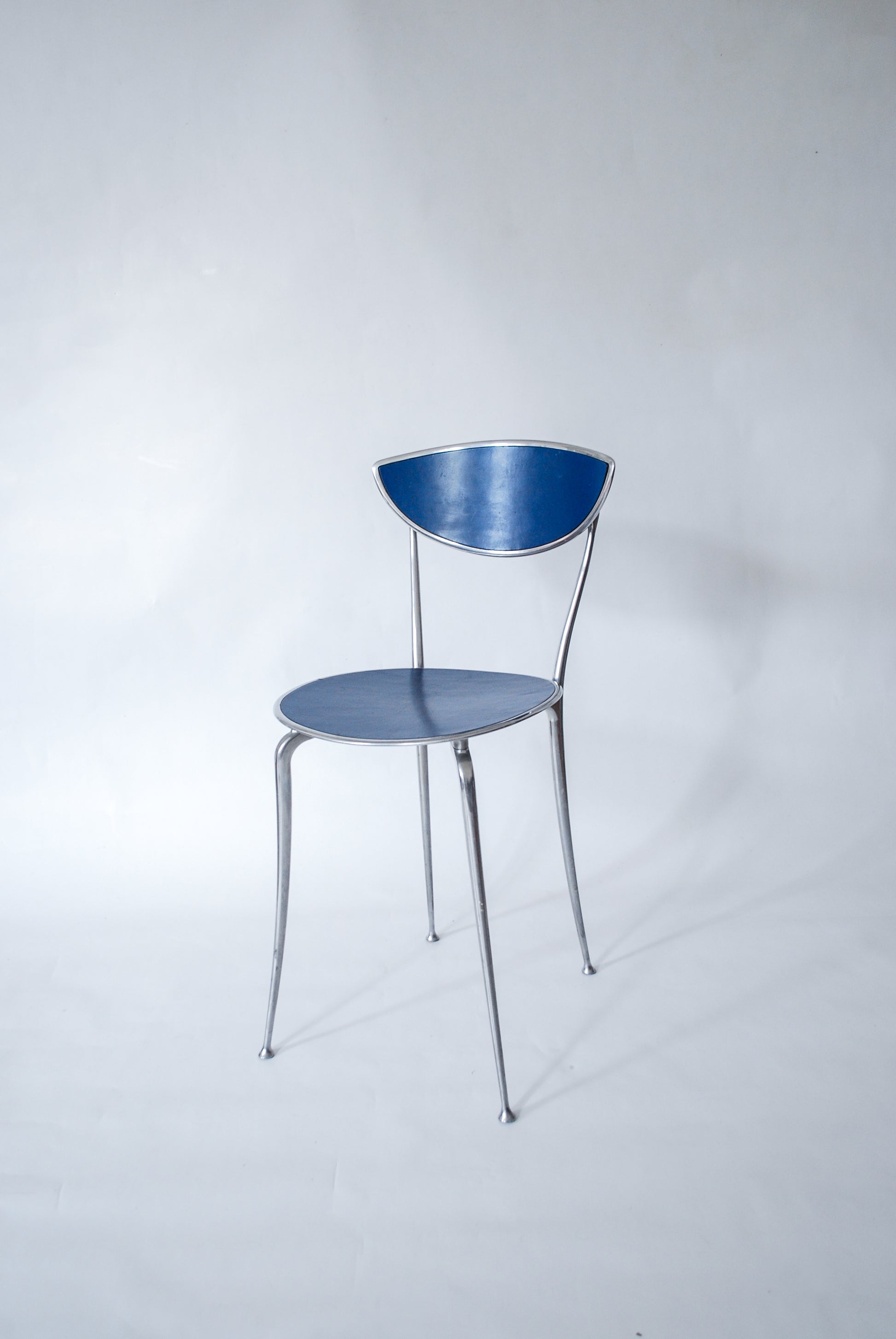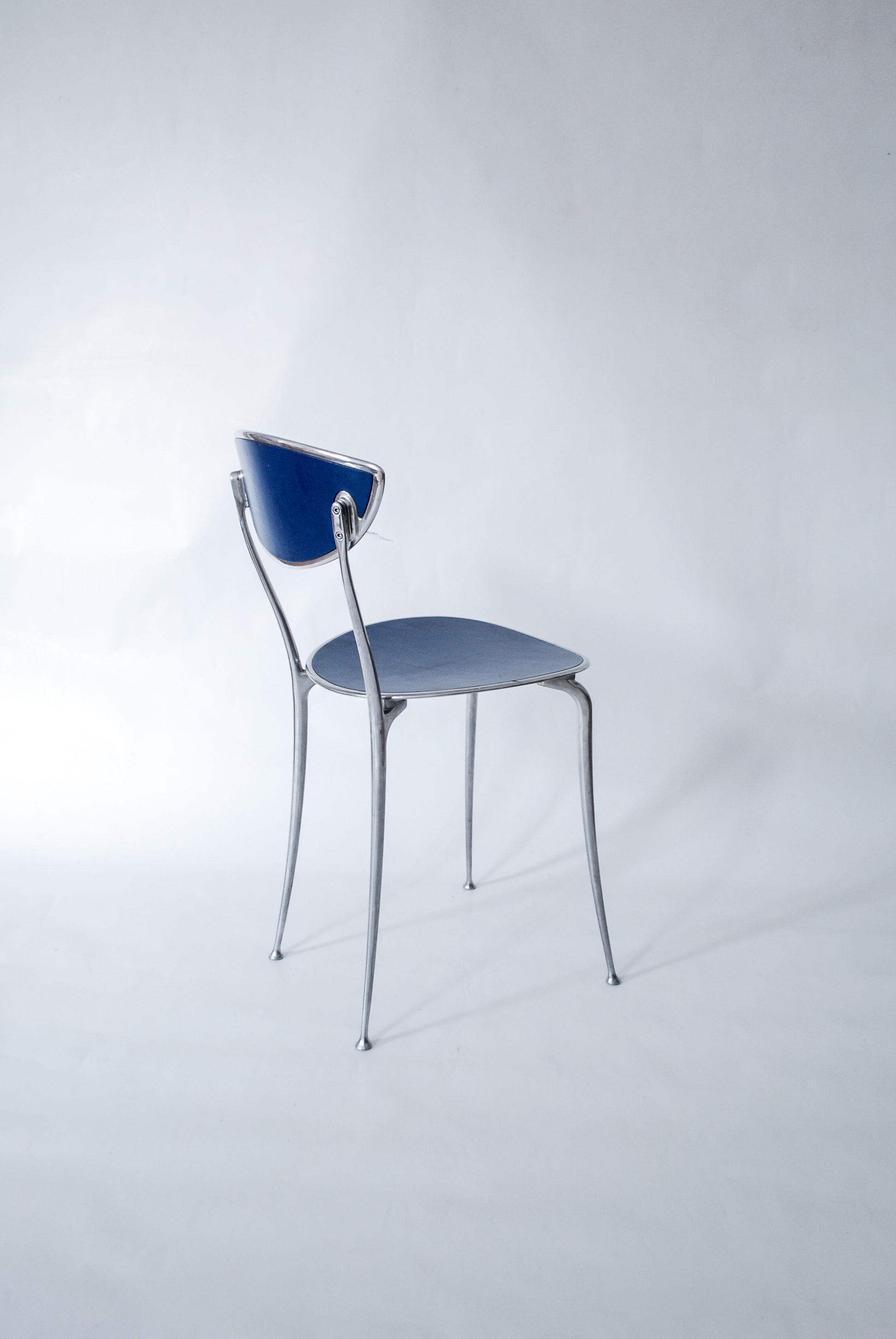 Aluminium Chair w/ Blue Leather Arper Italy 1990s