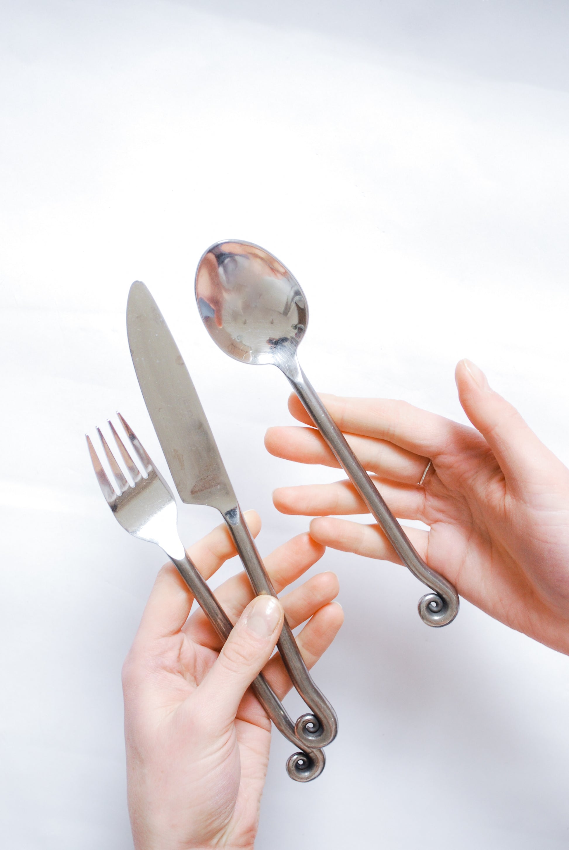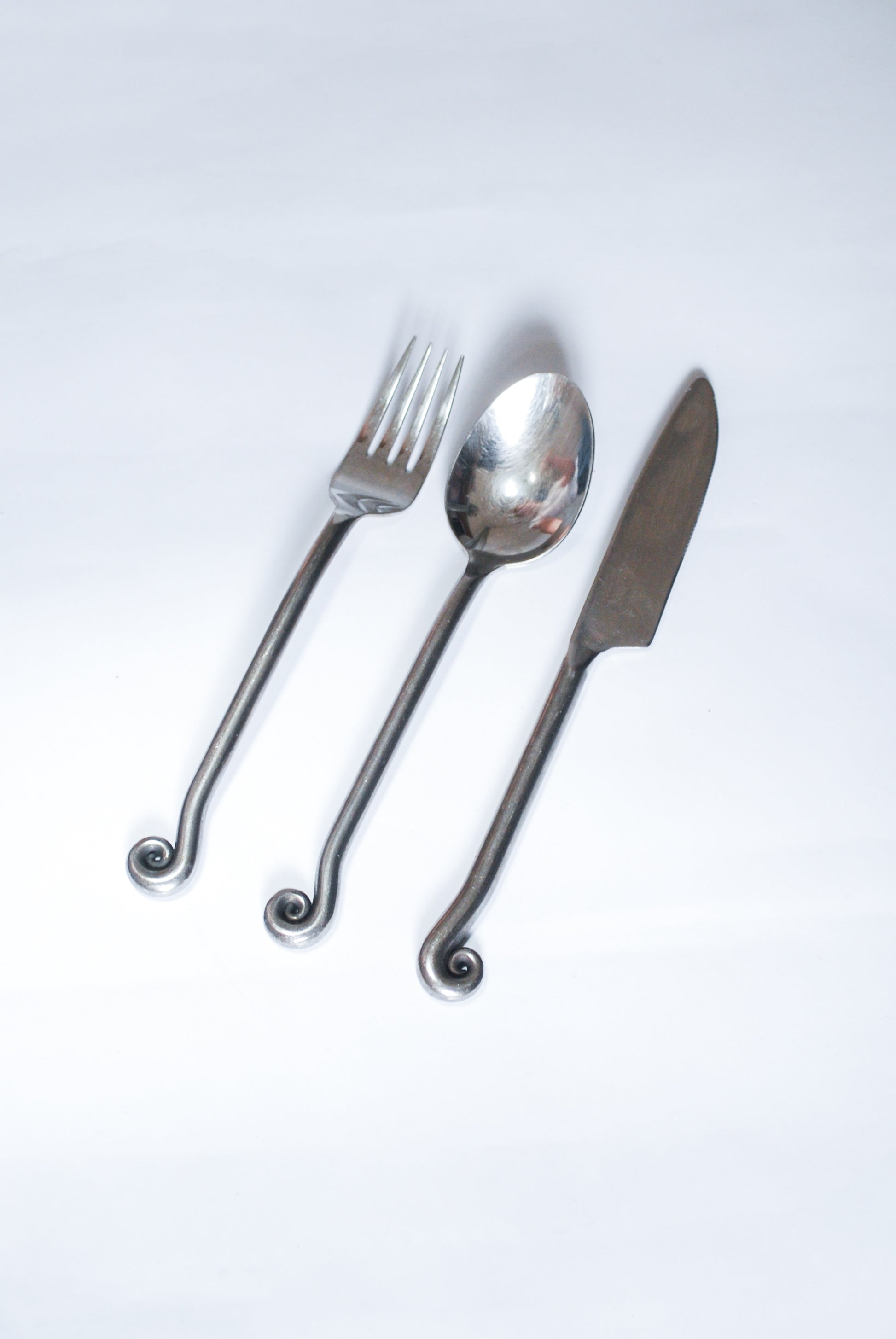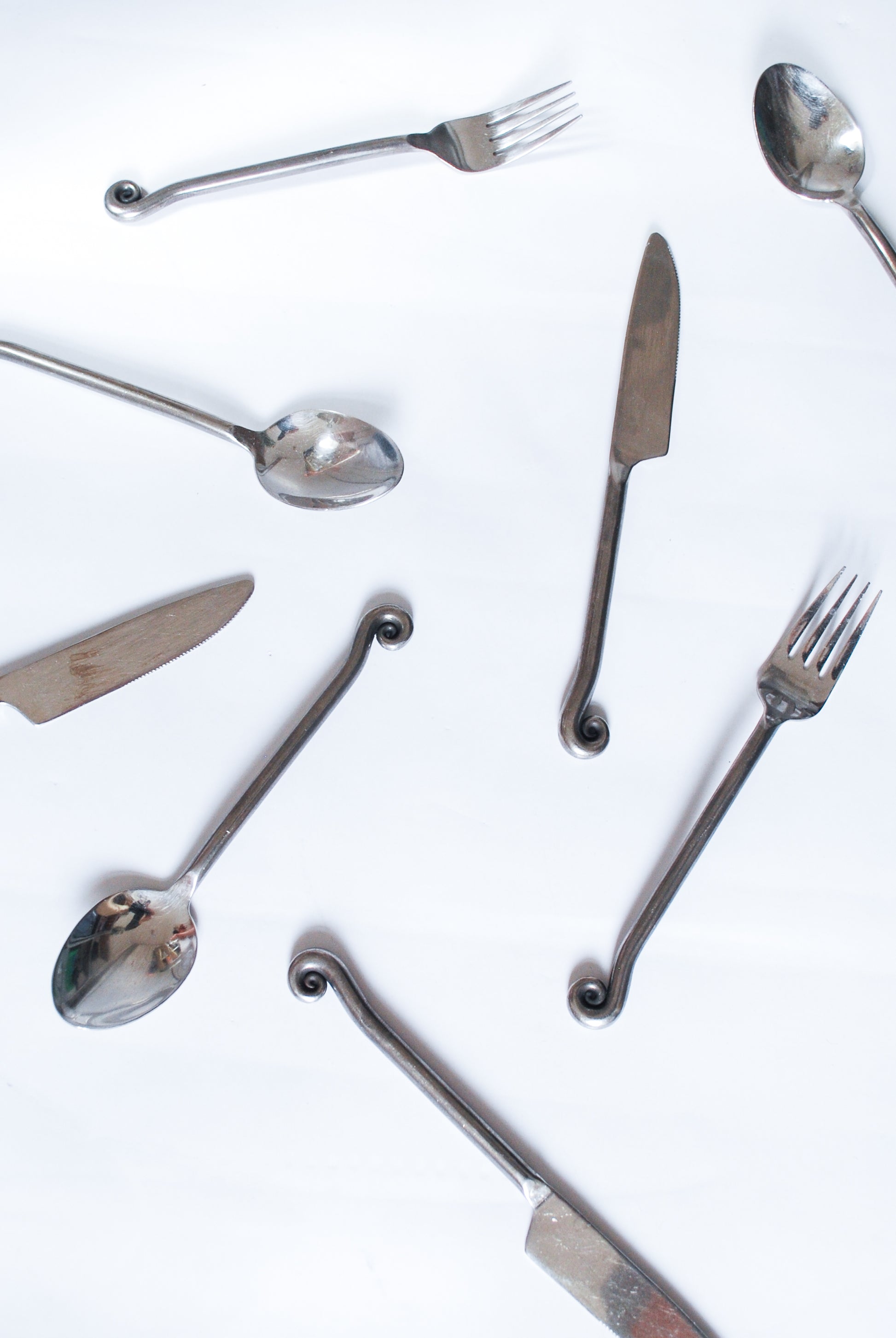Artisanal Steel Cutlery w/ Art Deco Style Fern Element, Unknown 1980s