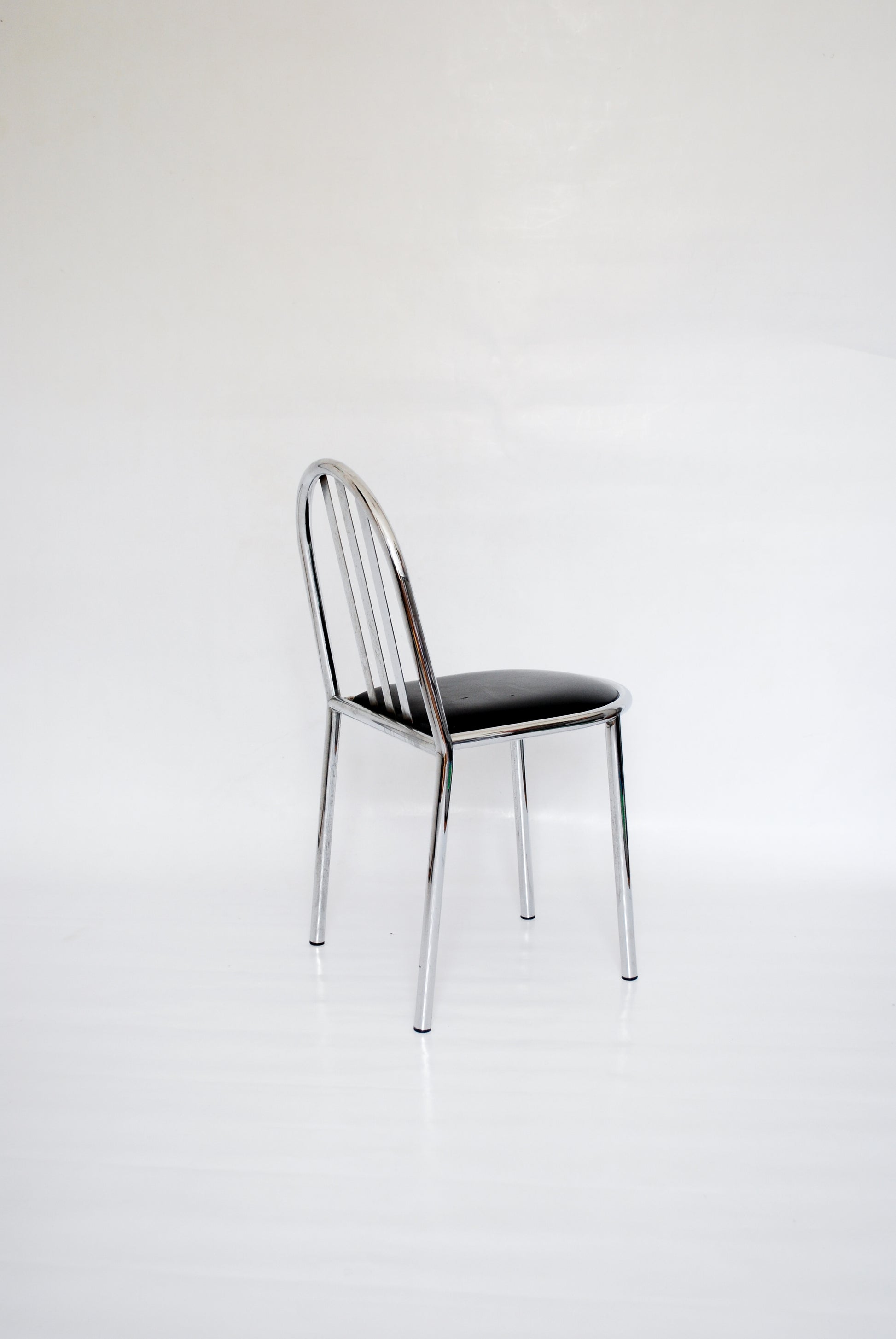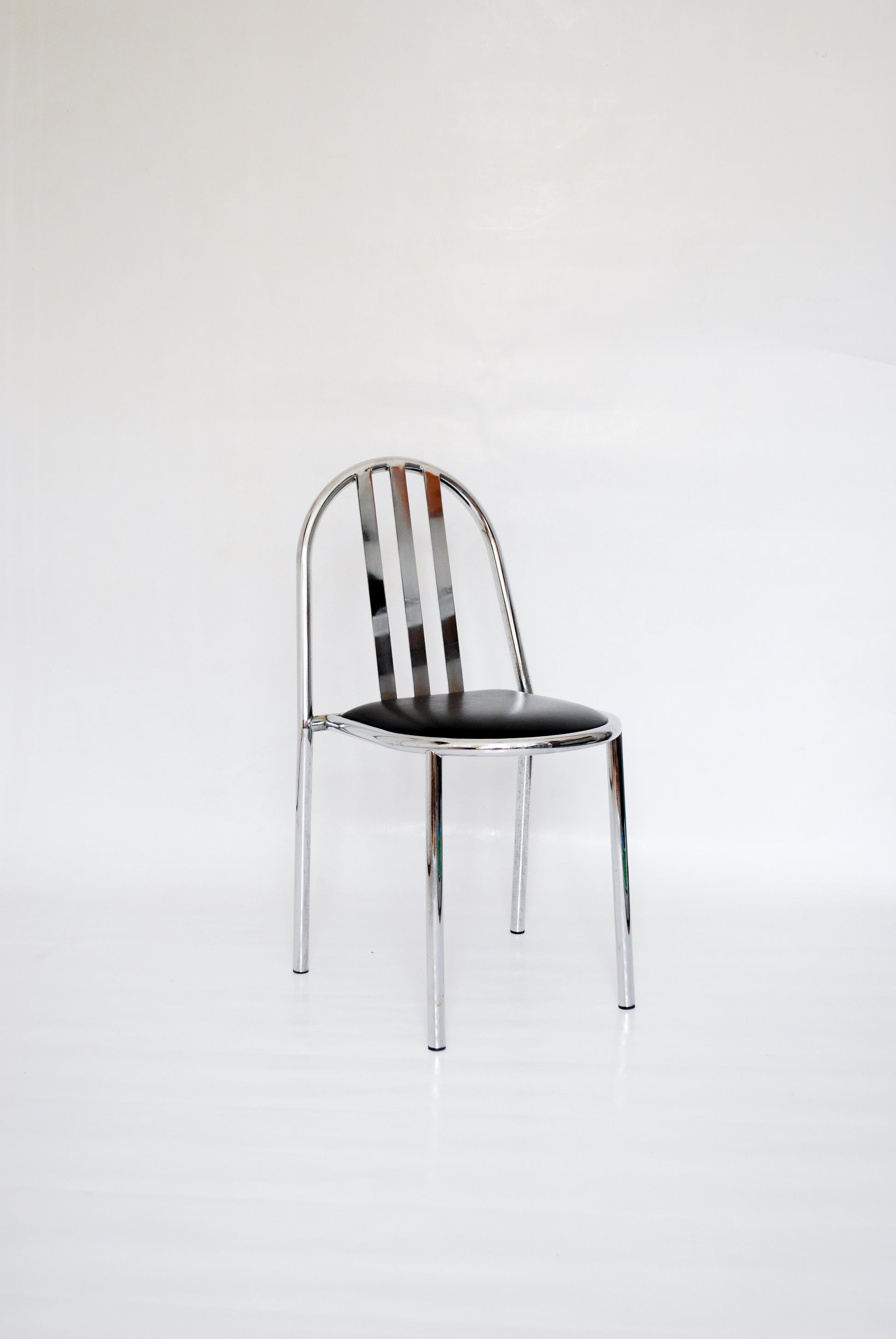 Rare version made from polished chrome metal with a fresh cowhide upholstery