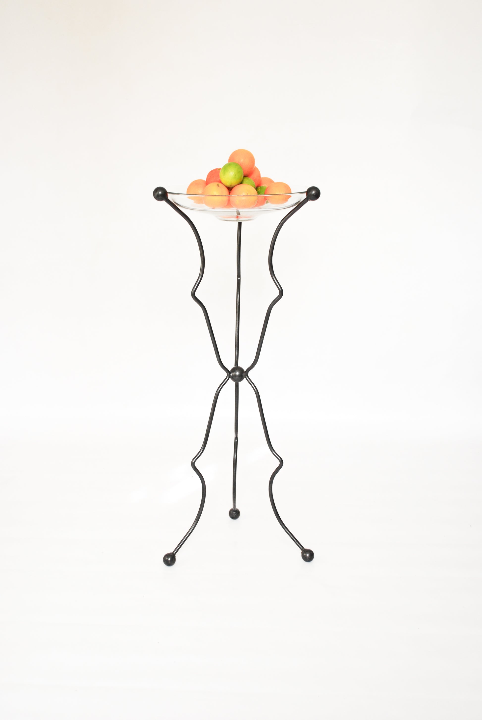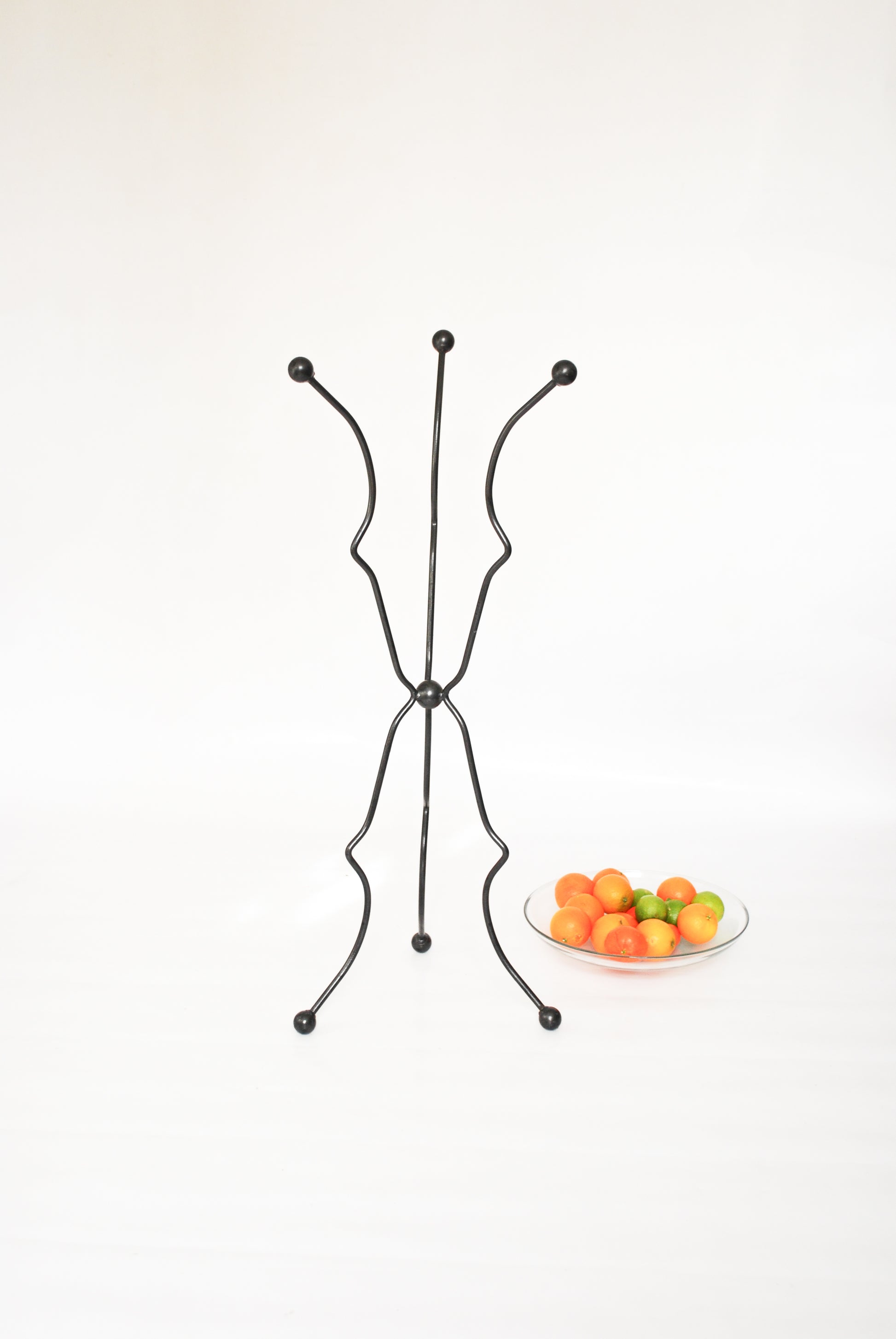 Elevated Tray on hand made Iron tripod with spherical details in an alien like style.