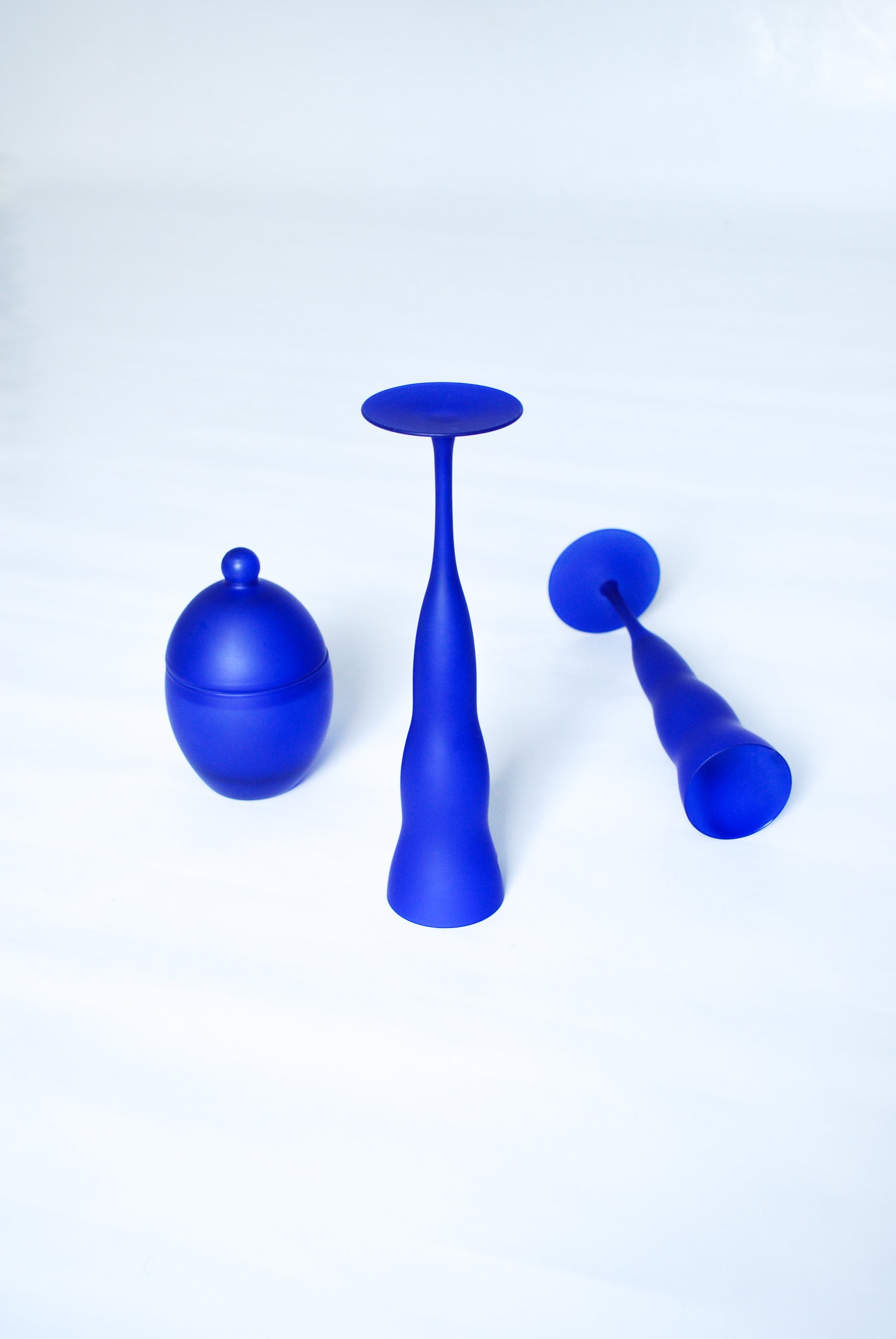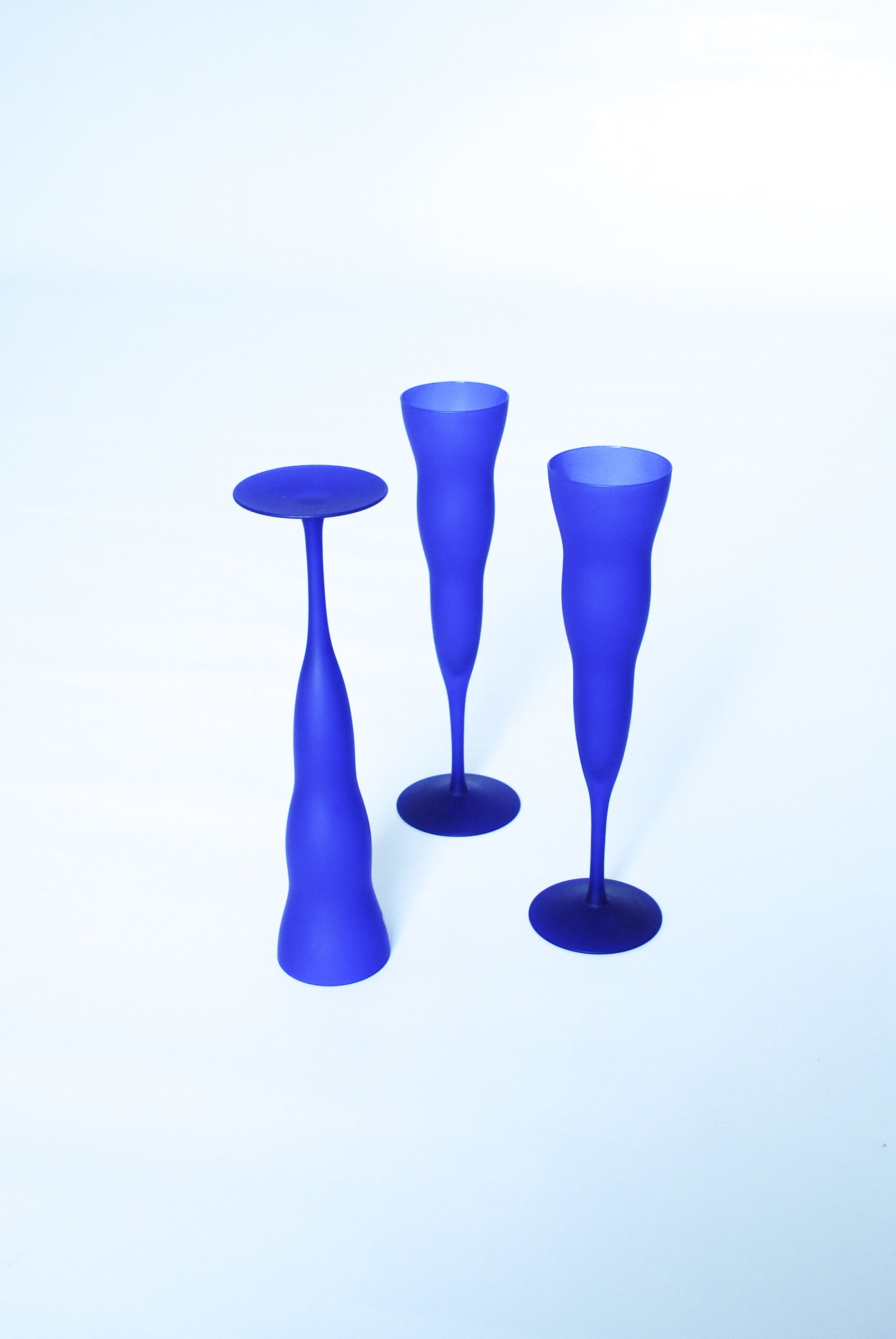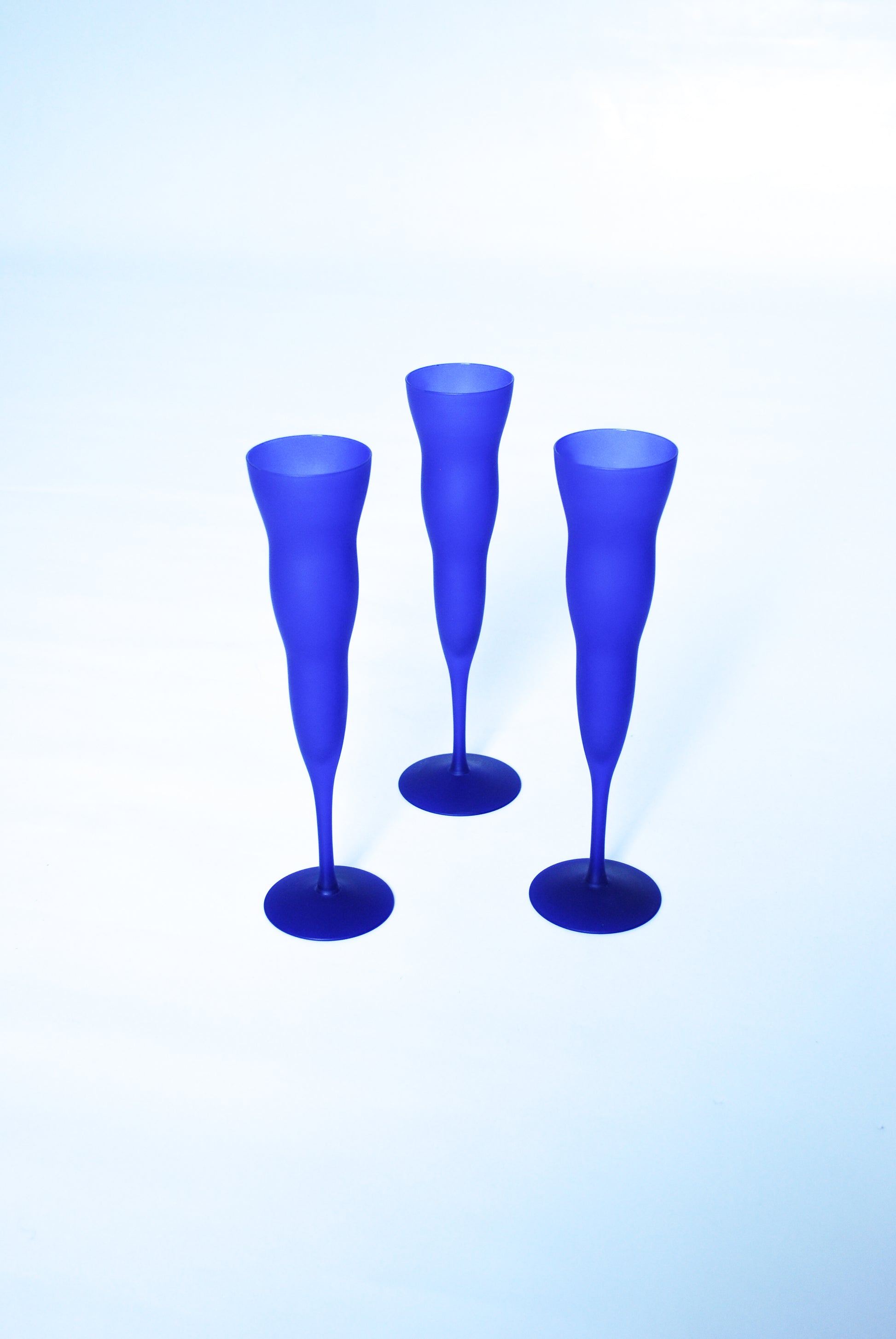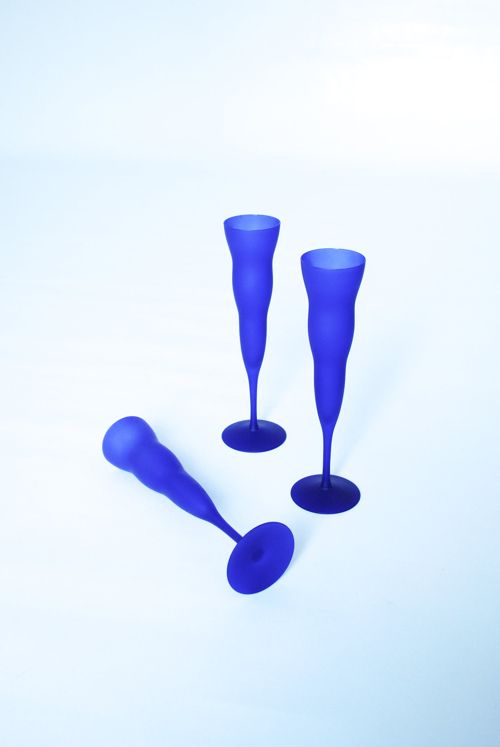 Frosted Wavy Cobalt Blue Champagne Glasses, Leonardo 1990s