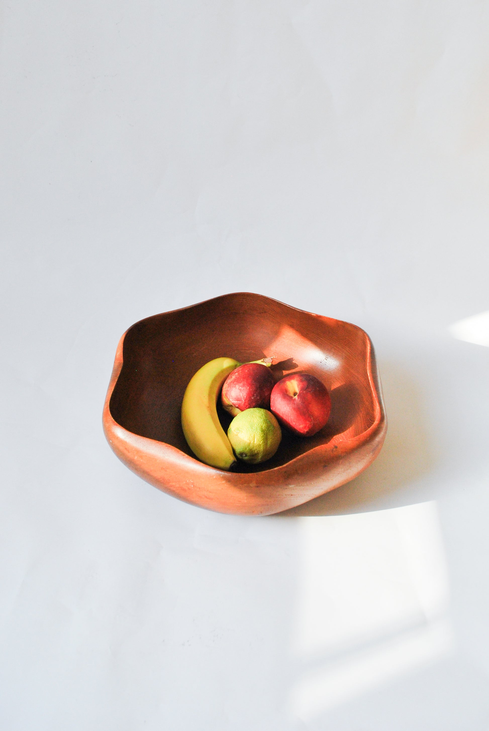 Hand-Carved Wavy Teak Wood Bowl, Unknown 1950s/60s